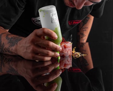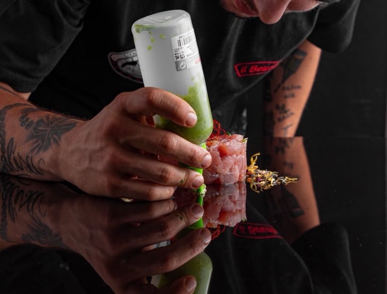 L'ultimo tocco del nostro Chef prima che il piatto arrivi al tavolo. Amiamo esaltare la purezza del crudo con delicatezza e un pizzico di estro moderno. Il mare nella sua forma più pura.